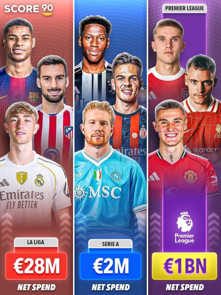 4大联赛夏窗净投入:英超10亿欧 西甲2800万意甲200万 德甲-1.4亿 admin 2025年08月14日 13:30 88 0 直播吧08月12日讯 外媒SCORE90统计了欧洲四大联赛在夏季转会窗的收支情况,英超以10亿欧元的净支出遥遥领先,西甲净支出2800万欧元,意甲200万欧元,德甲则在转会市场上净赚1.4亿欧元。四大联赛夏窗收支情况:英超支出23亿欧元,收入13亿欧元,净支出10亿欧元;西甲支出4.94亿欧元,收入4.66亿欧元,净支出2800万欧元;意甲支出8.34亿欧元,收入8.32亿欧元,净支出200万欧元;德甲支出5.893亿欧元,收入7.3亿欧元,净收入1.4亿欧元。 标签: #欧元 #西甲 #英超 #收支 #四大 #德甲 #支出 #联赛 #意甲